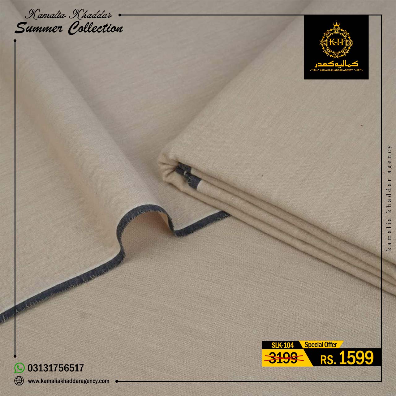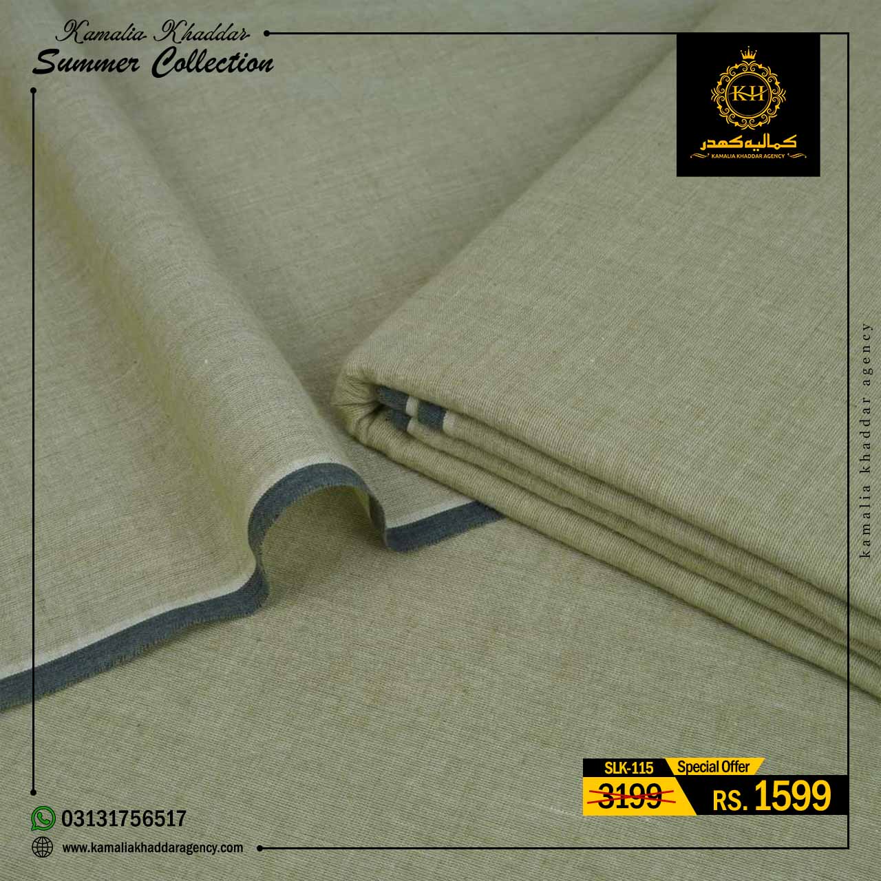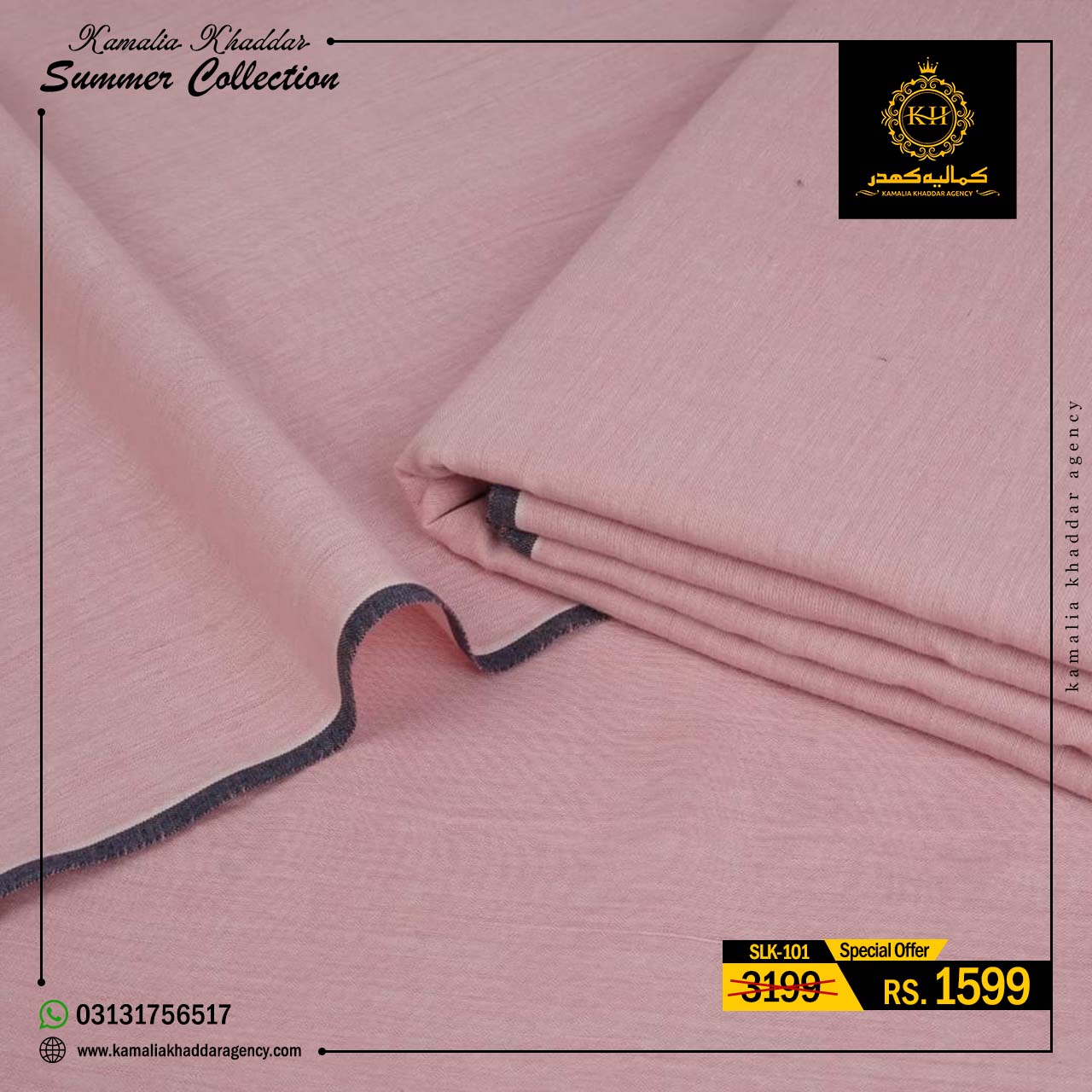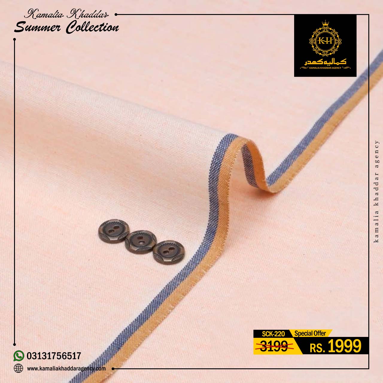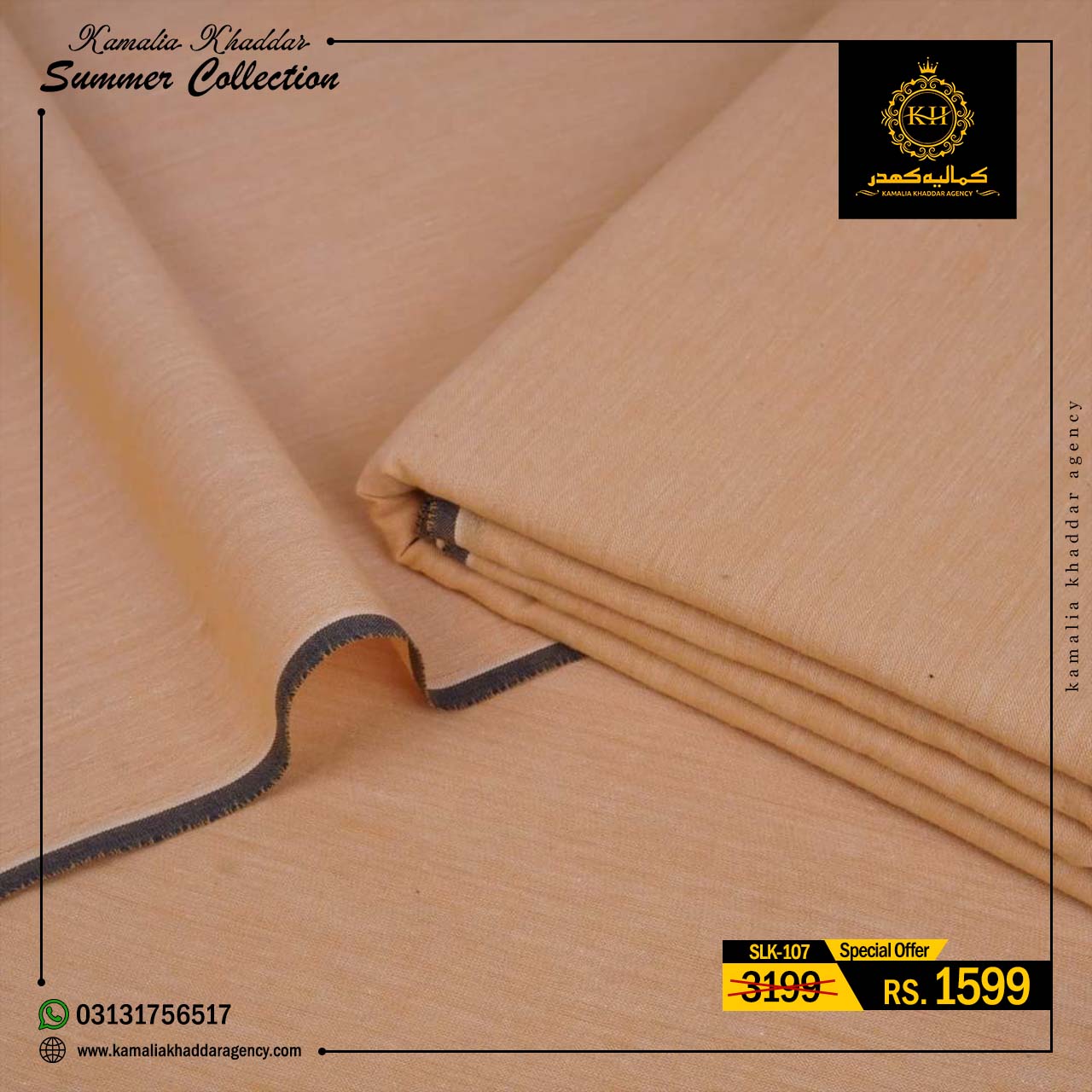 Regular price Rs.4,900.00 Sale price Rs.3,310.00 Save 32%At Kamalia Khaddar Agency, we proudly present our Summer Kamalia Khaddar Collection, crafted to keep you cool, comfortable, and connected to tradition. Originating from Kamalia, Pakistan, this handwoven fabric reflects centuries-old craftsmanship combined with modern summer comfort.