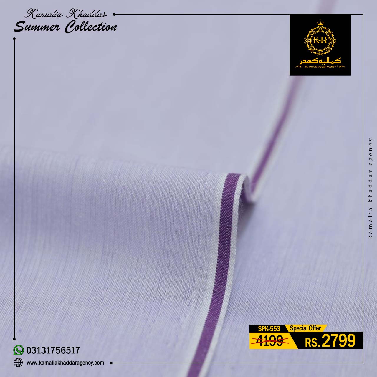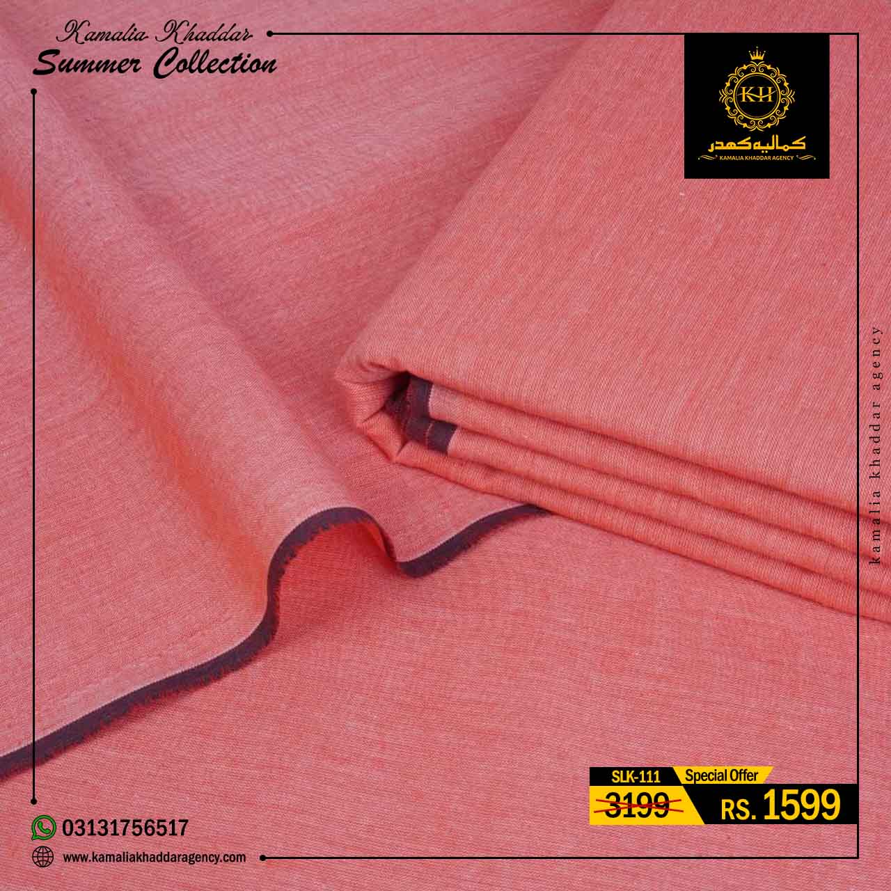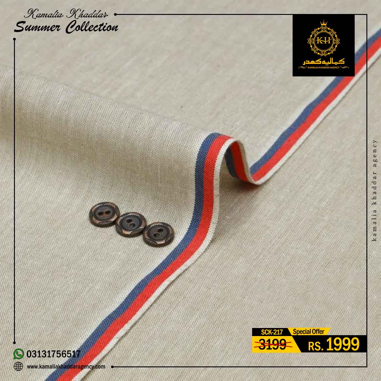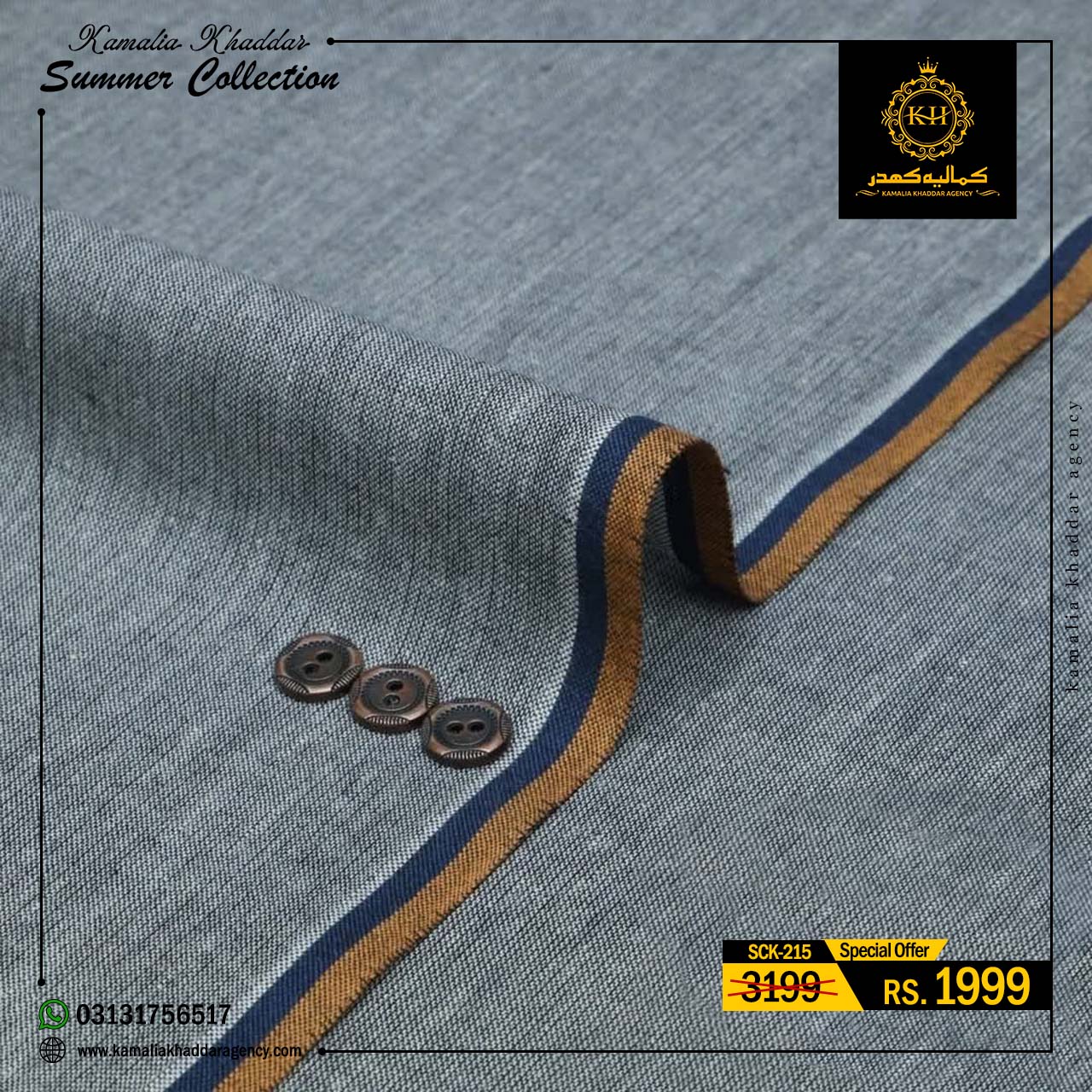 Regular price Rs.4,900.00 Sale price Rs.3,310.00 Save 32%At Kamalia Khaddar Agency, we proudly present our Summer Kamalia Khaddar Collection, crafted to keep you cool, comfortable, and connected to tradition. Originating from Kamalia, Pakistan, this handwoven fabric reflects centuries-old craftsmanship combined with modern summer comfort.