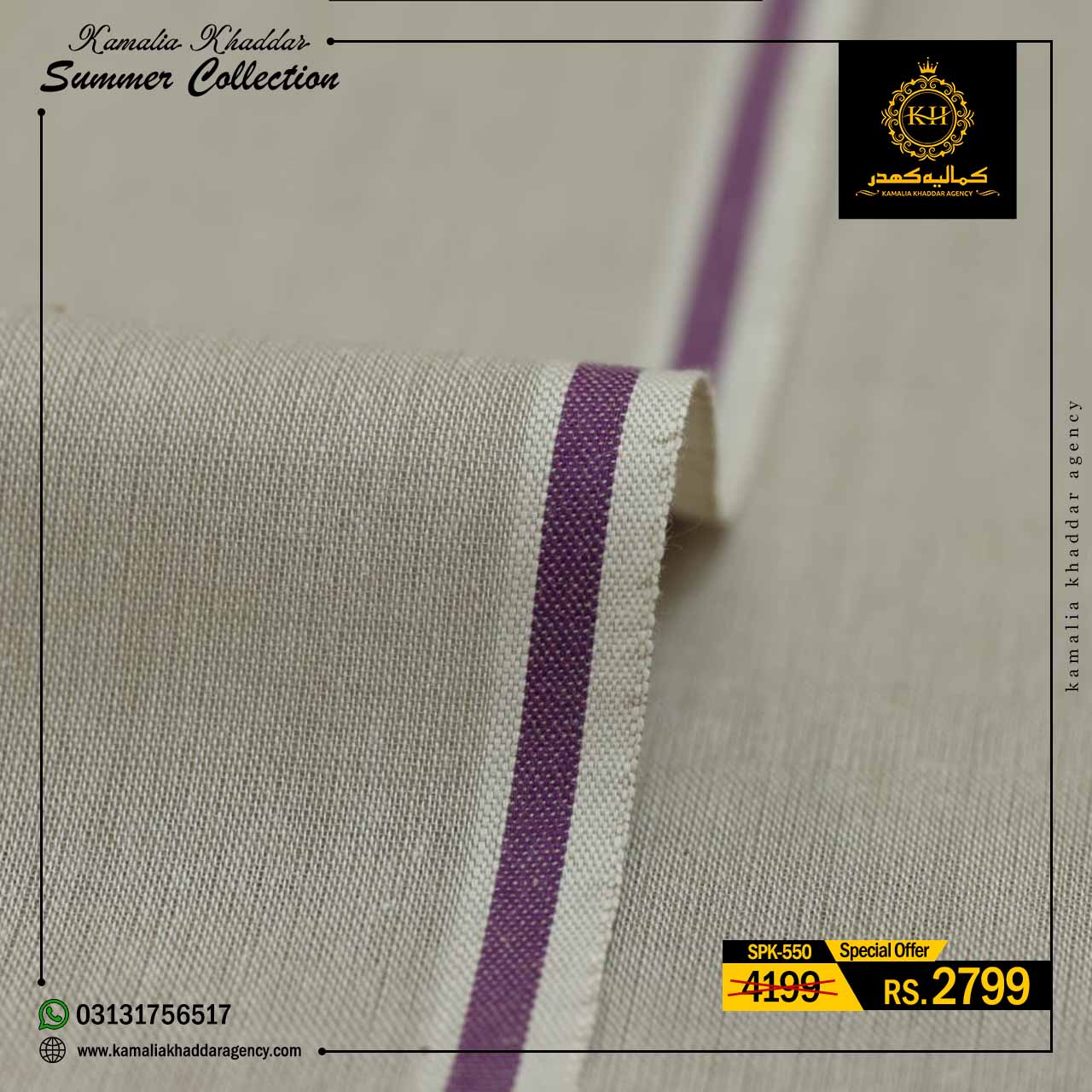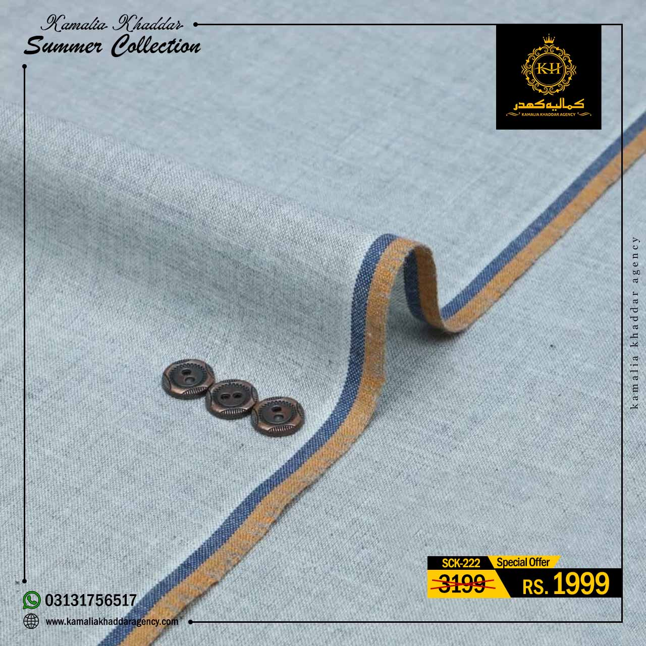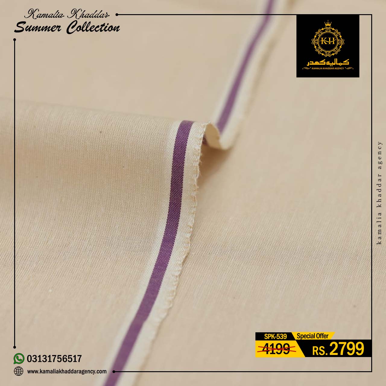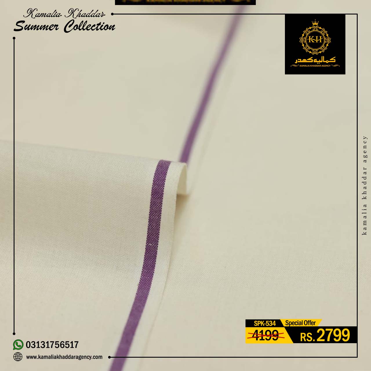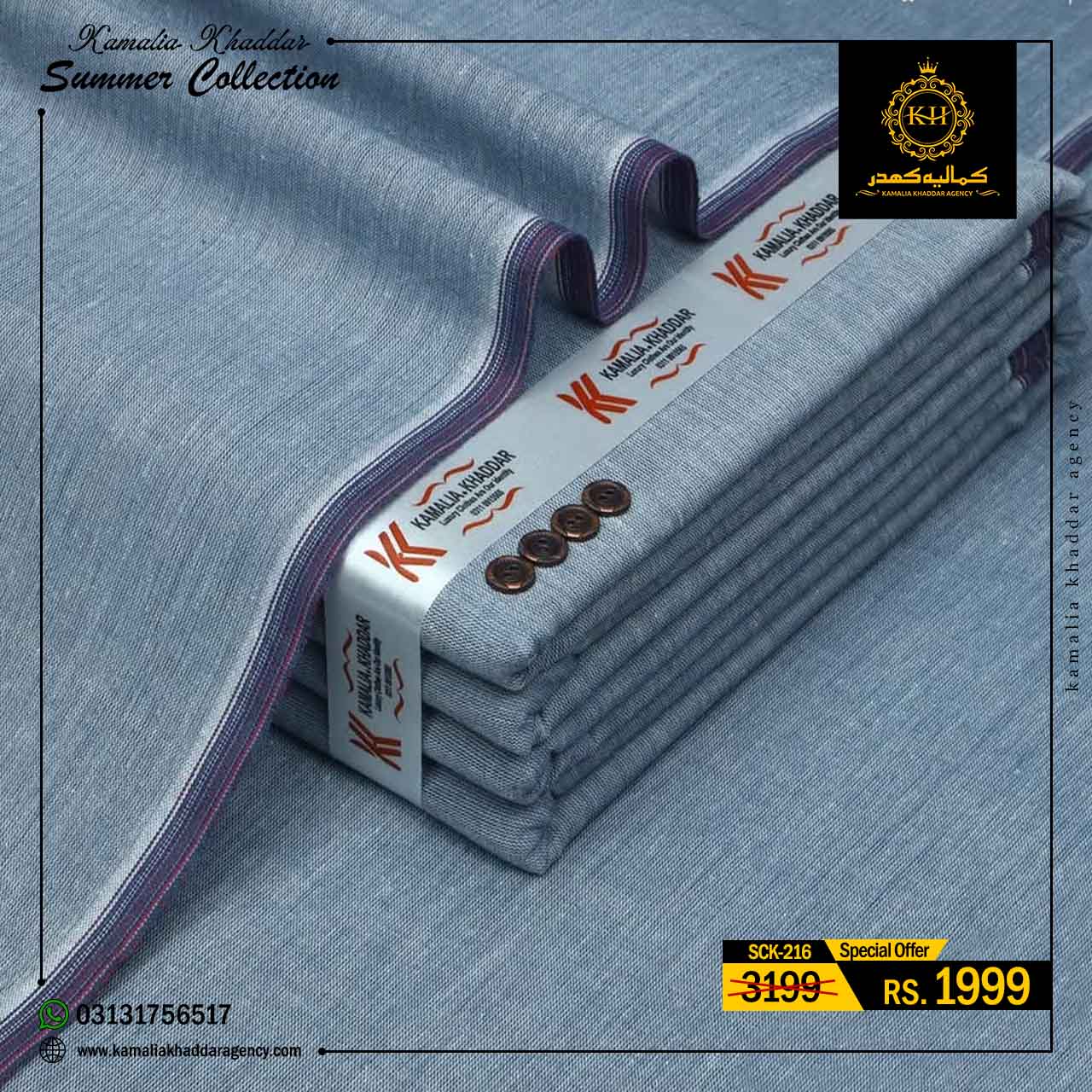 Regular price Rs.4,900.00 Sale price Rs.3,310.00 Save 32%At Kamalia Khaddar Agency, we proudly present our Summer Kamalia Khaddar Collection, crafted to keep you cool, comfortable, and connected to tradition. Originating from Kamalia, Pakistan, this handwoven fabric reflects centuries-old craftsmanship combined with modern summer comfort.