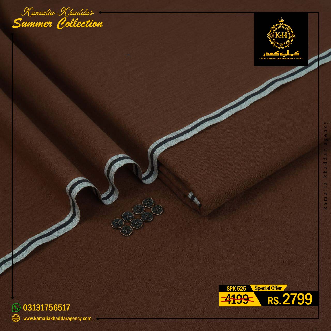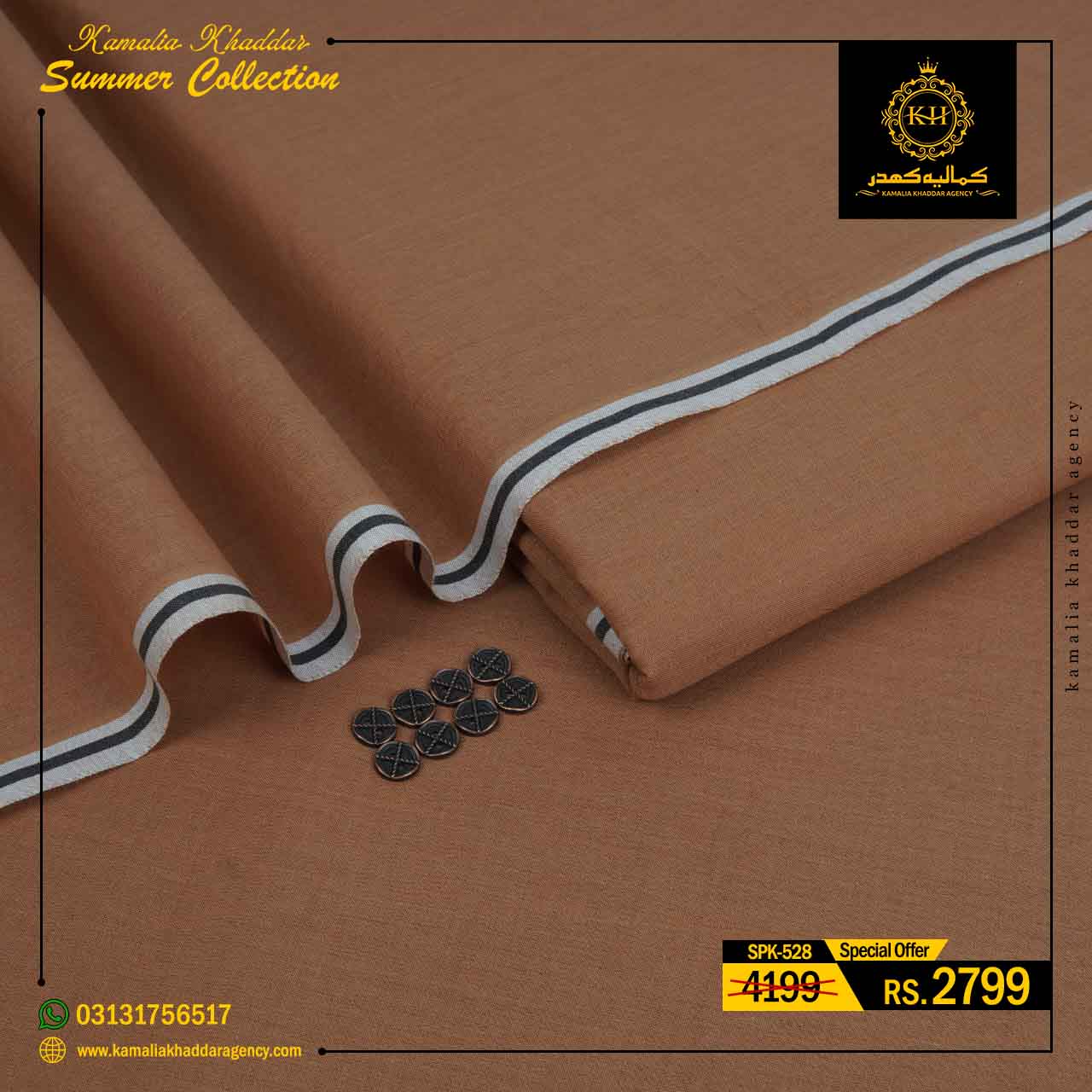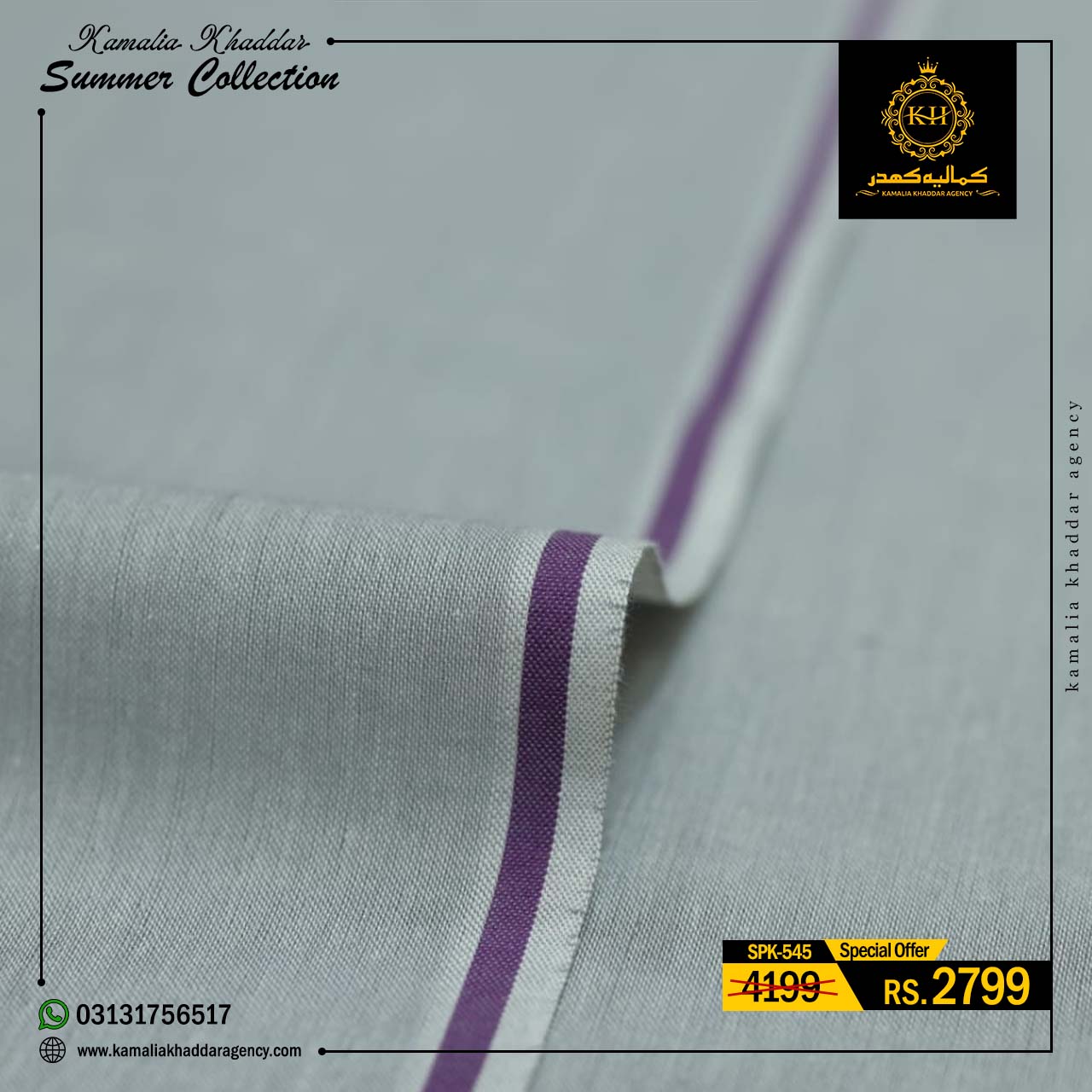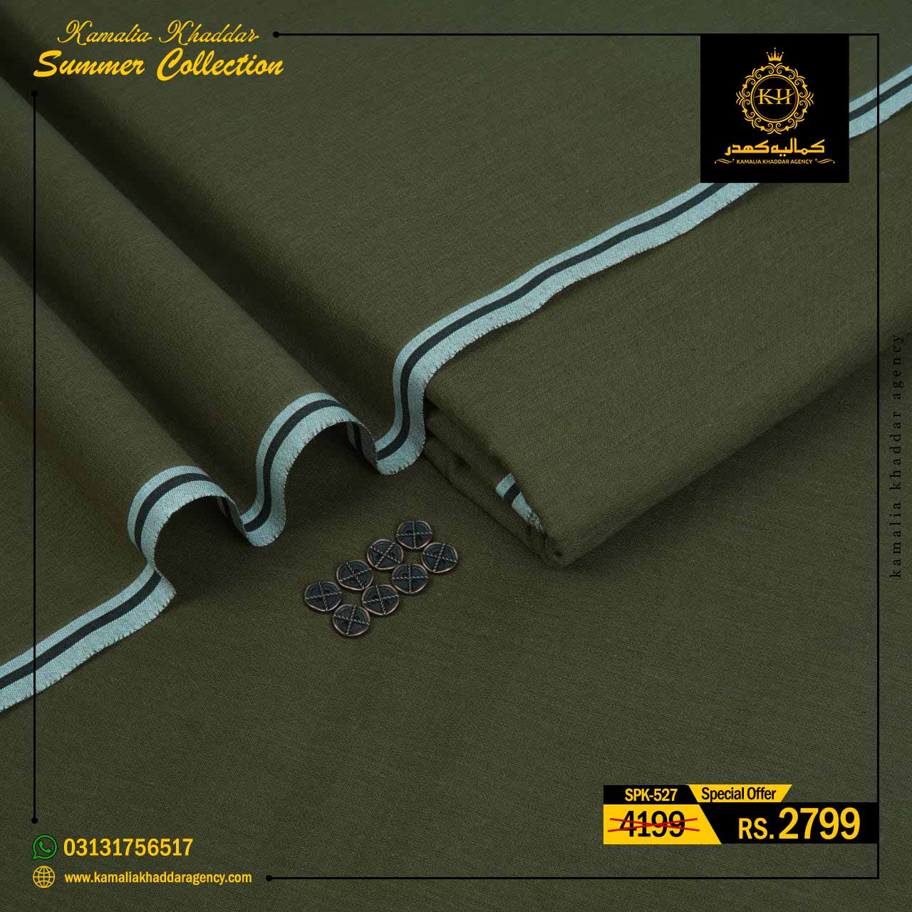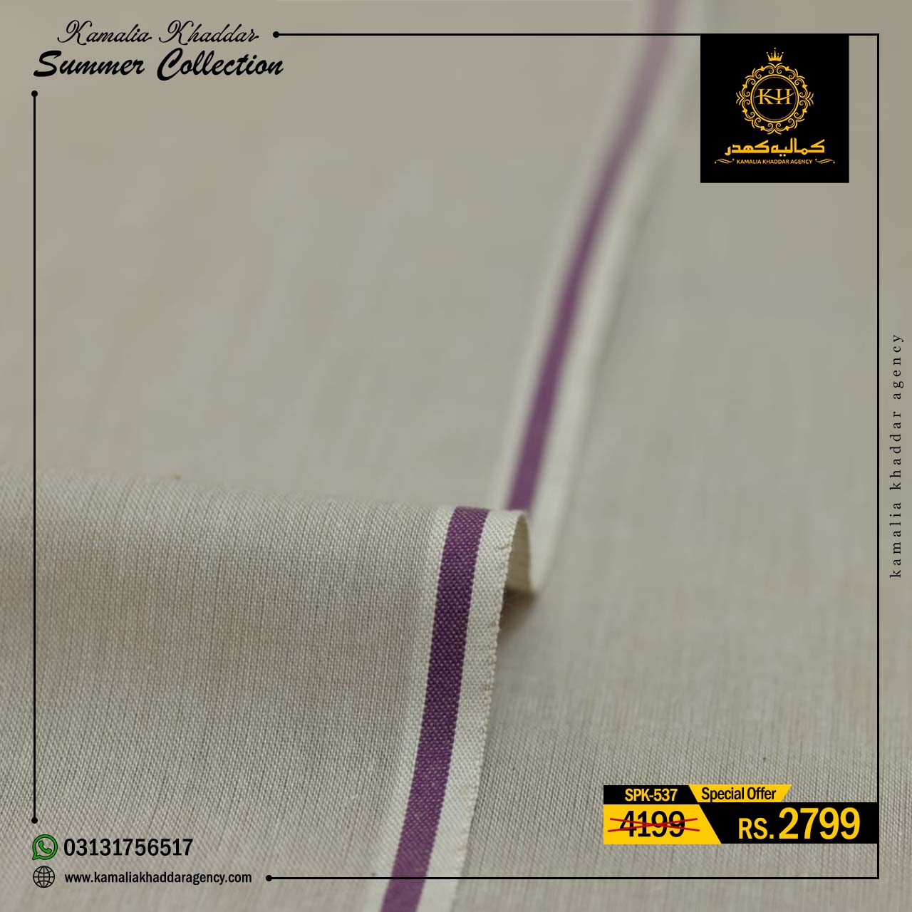 Regular price Rs.4,900.00 Sale price Rs.3,310.00 Save 32%At Kamalia Khaddar Agency, we proudly present our Summer Kamalia Khaddar Collection, crafted to keep you cool, comfortable, and connected to tradition. Originating from Kamalia, Pakistan, this handwoven fabric reflects centuries-old craftsmanship combined with modern summer comfort.