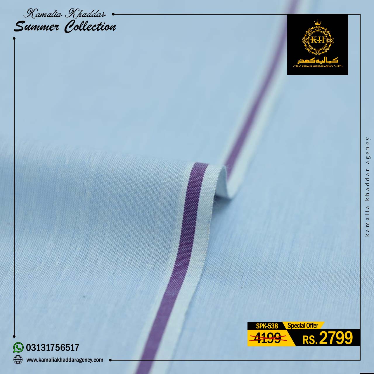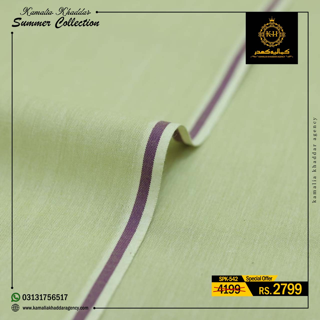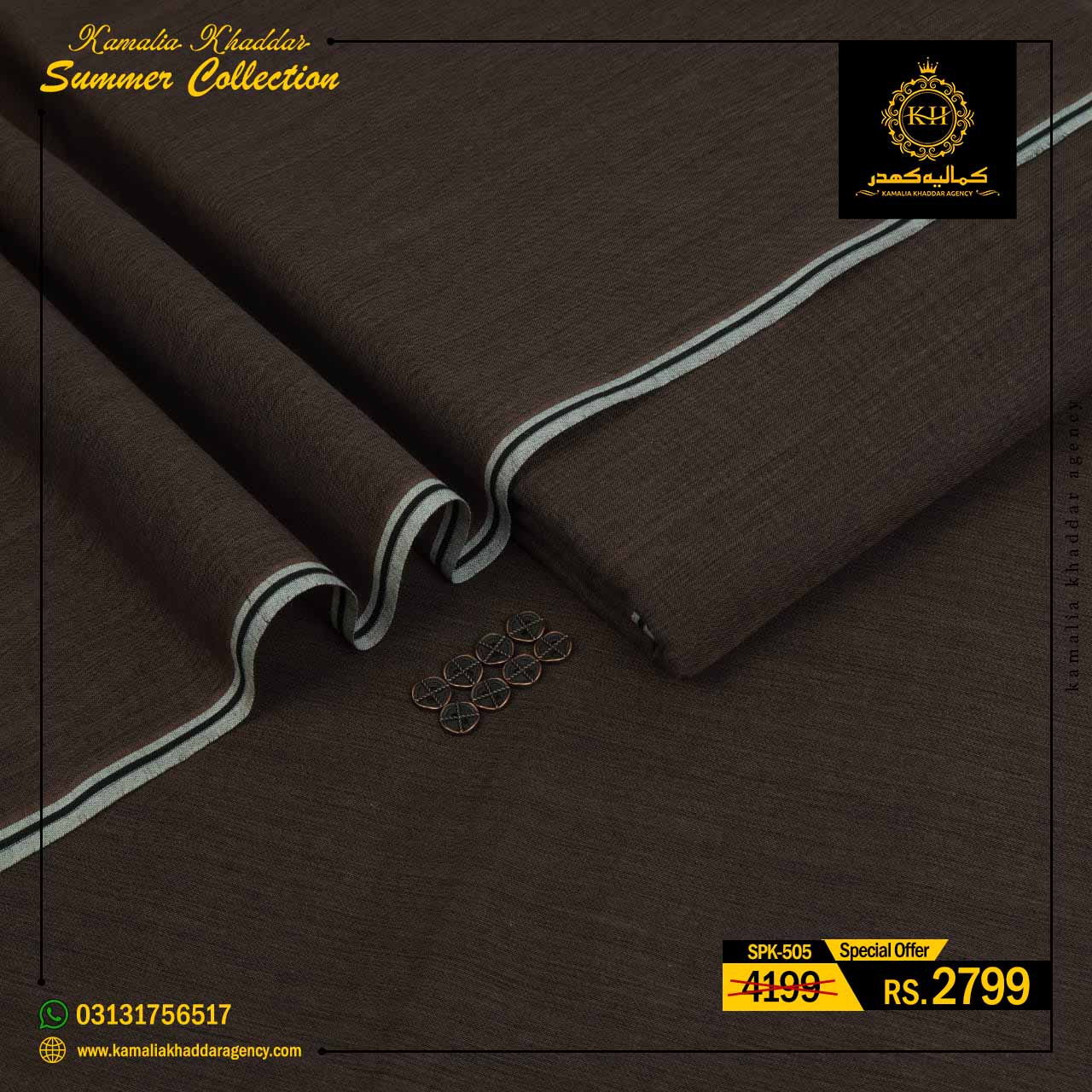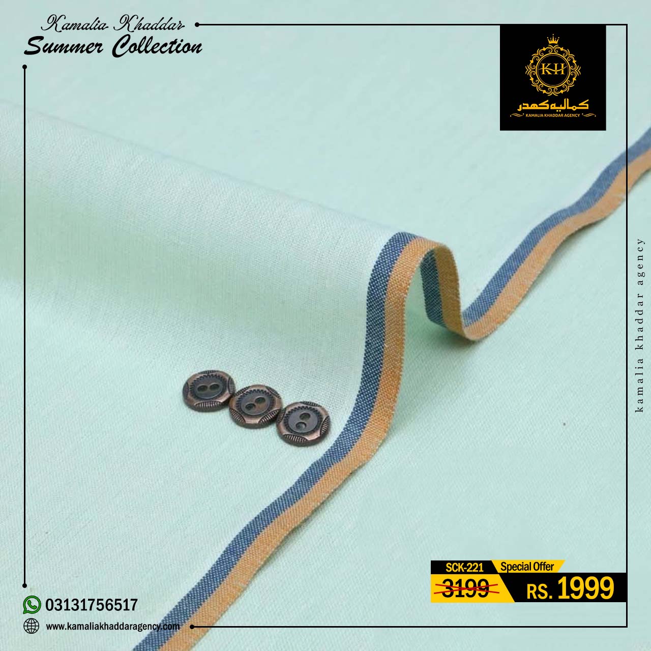 Regular price Rs.4,900.00 Sale price Rs.3,310.00 Save 32%At Kamalia Khaddar Agency, we proudly present our Summer Kamalia Khaddar Collection, crafted to keep you cool, comfortable, and connected to tradition. Originating from Kamalia, Pakistan, this handwoven fabric reflects centuries-old craftsmanship combined with modern summer comfort.