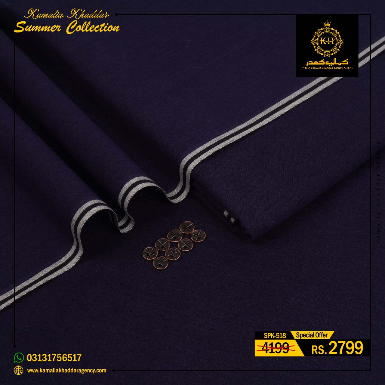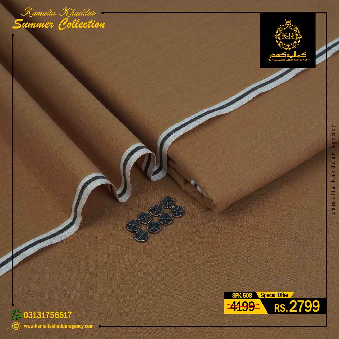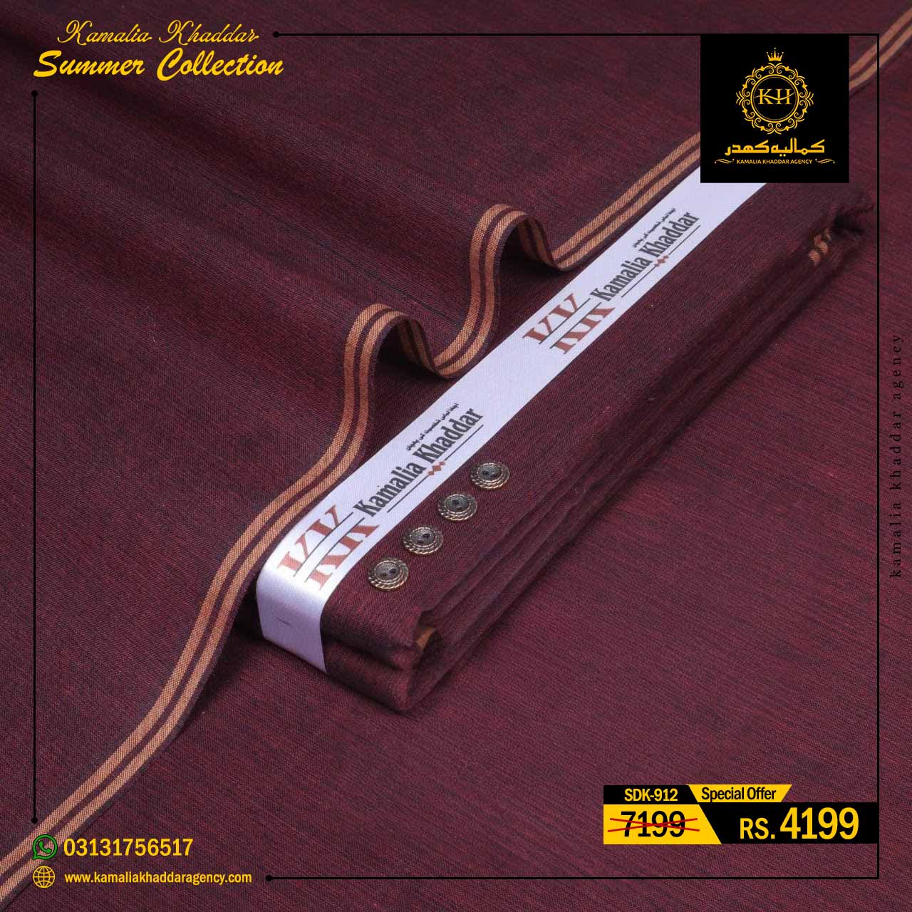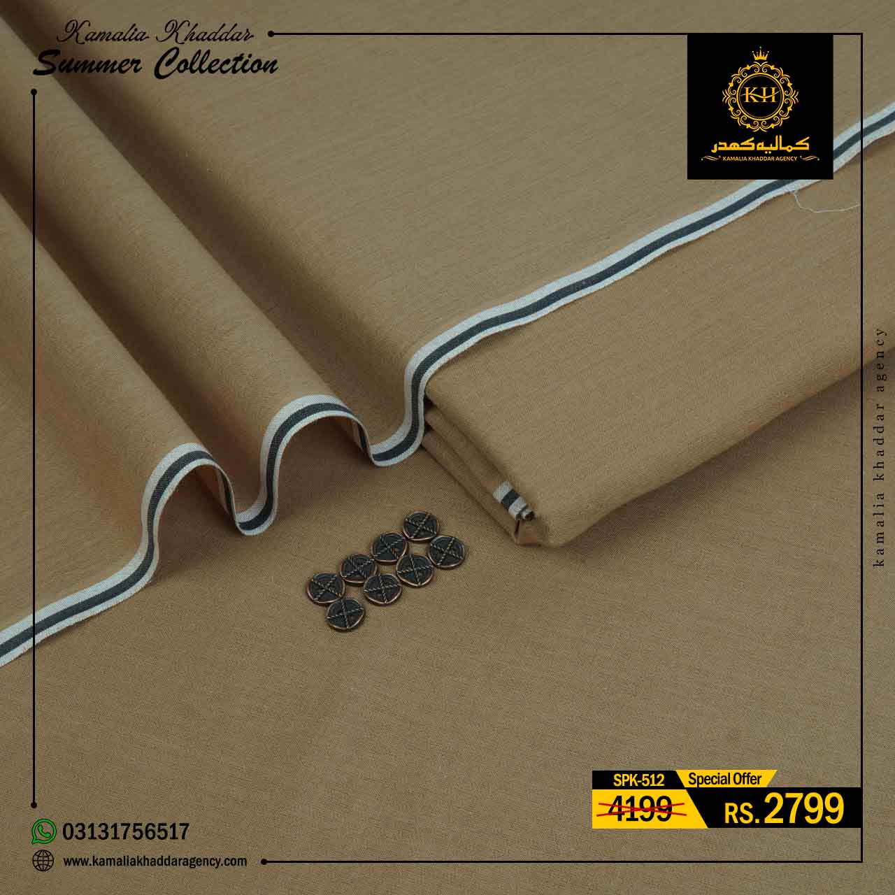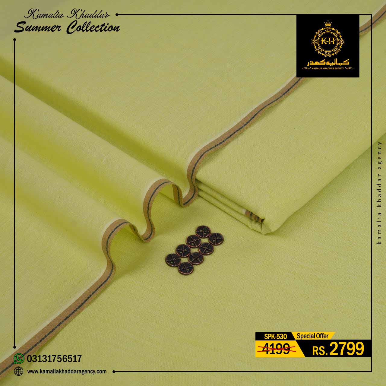 Regular price Rs.4,900.00 Sale price Rs.3,310.00 Save 32%At Kamalia Khaddar Agency, we proudly present our Summer Kamalia Khaddar Collection, crafted to keep you cool, comfortable, and connected to tradition. Originating from Kamalia, Pakistan, this handwoven fabric reflects centuries-old craftsmanship combined with modern summer comfort.