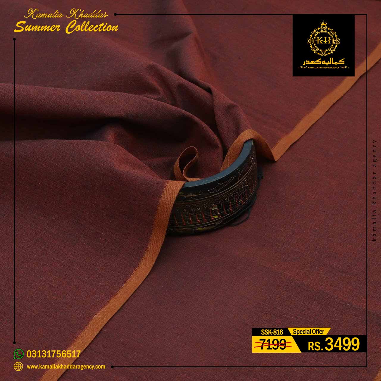 Regular price Rs.7,199.00 Sale price Rs.3,410.00 Save 53%At Kamalia Khaddar Agency, we proudly present our Summer Kamalia Khaddar Collection, crafted to keep you cool, comfortable, and connected to tradition. Originating from Kamalia, Pakistan, this handwoven fabric reflects centuries-old craftsmanship combined with modern summer comfort.