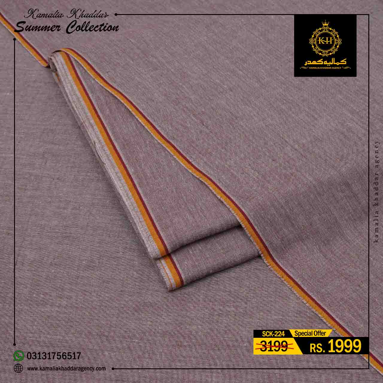 Regular price Rs.3,199.00 Sale price Rs.1,910.00 Save 40%At Kamalia Khaddar Agency, we proudly present our Summer Kamalia Khaddar Collection, crafted to keep you cool, comfortable, and connected to tradition. Originating from Kamalia, Pakistan, this handwoven fabric reflects centuries-old craftsmanship combined with modern summer comfort.